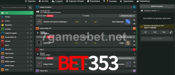O bet353 oferece uma grande seleção de opções de apostas em e-sports com probabilidades competitivas